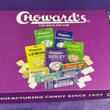 Beautifully decorated gift box keep sake filled with all Choward’s Mints and Gum and swag. Contents: 2 packs of each of the following, Violet mints, Scented gum, Lemon mints, Guava candy, Peppermint mints, Spearmint mints, 1 ea. of the peg bags, Violet, Guava, Lemon, Peppermint, Spearmint, a Violet Pouch bag, Choward’s Pen, Violet mint laptop sticker, Violet mint fridge magnet.